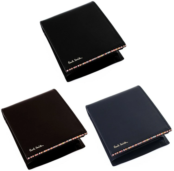 ポールスミスといえばカラフルなストライプ模様。こちらの2つ折り財布にも写真のように端にワンポイントのストライプ模様が入っていてオシャレですよね。ブランドロゴもいい感じで配置されています。