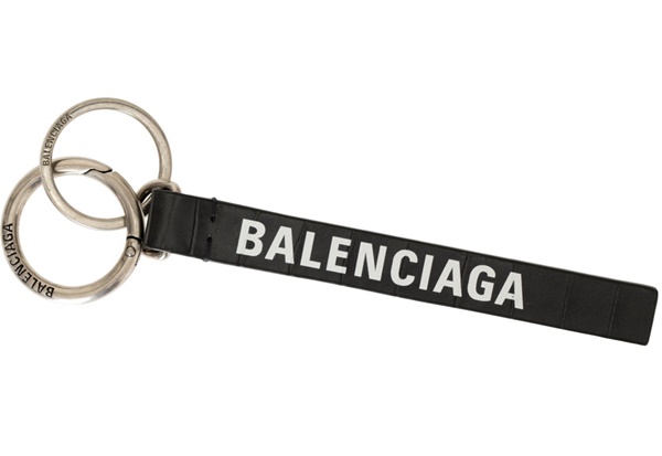 バレンシアガのこちらのキーホルダーは、形状とデザインがシンプルながらもブランド名が大きくデザインされてて存在感があります。使用されてるレザー素材は型押し加工によってクロコ柄になっていてカッコいいです。