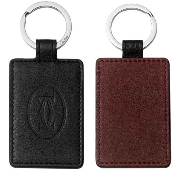 少し値段は上がりますが、ブランド物のキーホルダーを選ぶのもいいかもしれません。こちらはカルティエのキーホルダーですね。四角く暗めの色合いのアイテムで、落ち着きと存在感があります。