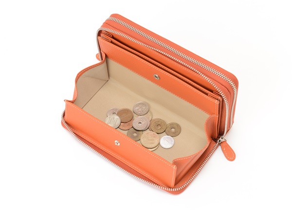 こちらの財布はラウンドファスナータイプとなっていて、ファスナーを閉めた状態ではスッキリとした印象を与え、ファスナーを開ければ本体が大きく開くので収納もしやすいですよ。