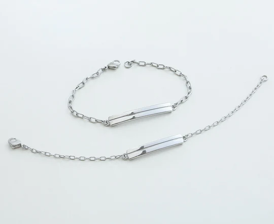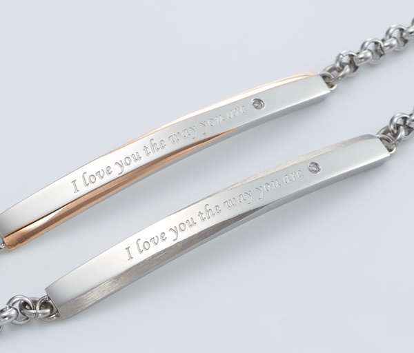 こちらはステンレスタイプのペアブレスレットなので、アレルギー持ちの方でも身に着けられます。キズやサビなどにも強いので、長く使い続けられますよ。
