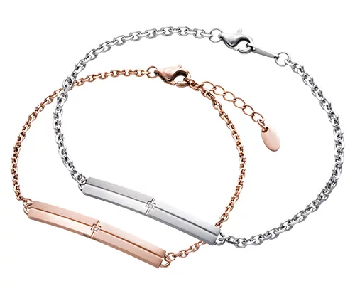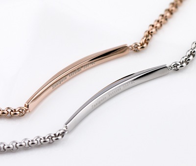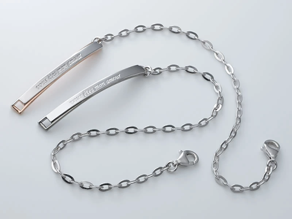 こちらもシルバーとピンクゴールドの色合いがキレイなペアブレスレットです。プレート部分はカーブ形状になっていて、手に馴染むような形になっています。