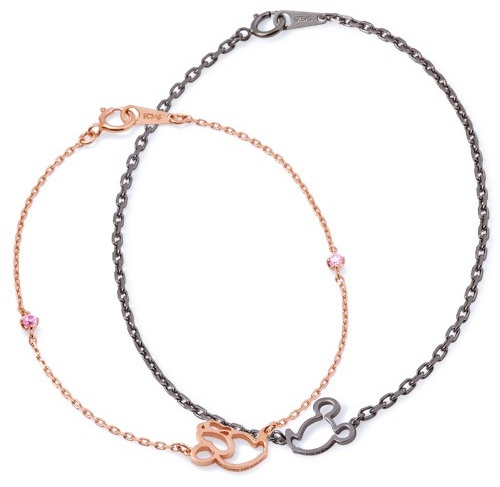 THE KISSのミッキー&ミニーのペアブレスレットも人気が高く、こちらはそれぞれを近づけるとお互いにキスしてるように見えるかわいいデザインのアクセサリーです。