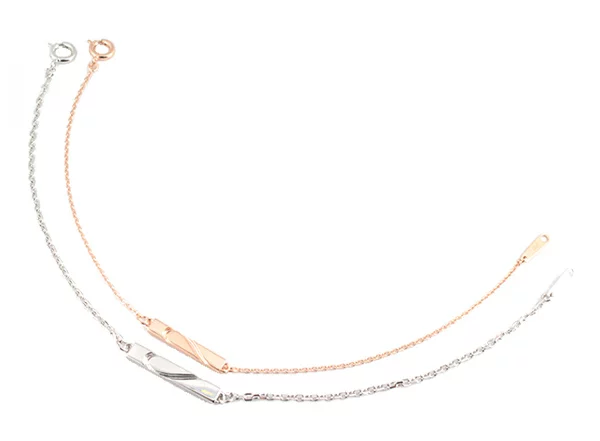 4℃もアクセサリーブランドとして人気が高く、こちらはそんな4℃のペアブレスレットです。男性はシルバー、女性はピンクゴールドという定番のカラーとなっています。