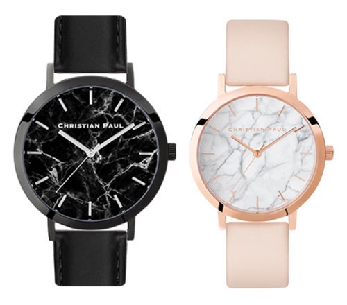 クリスチャンポールのこちらのペアウォッチは、大理石をモチーフにしたオシャレなデザインとなっています。メンズはブラックでかっこ良く、そして女性はピンクで可愛く。そんなペアウォッチです。