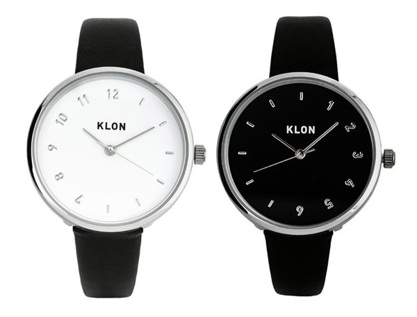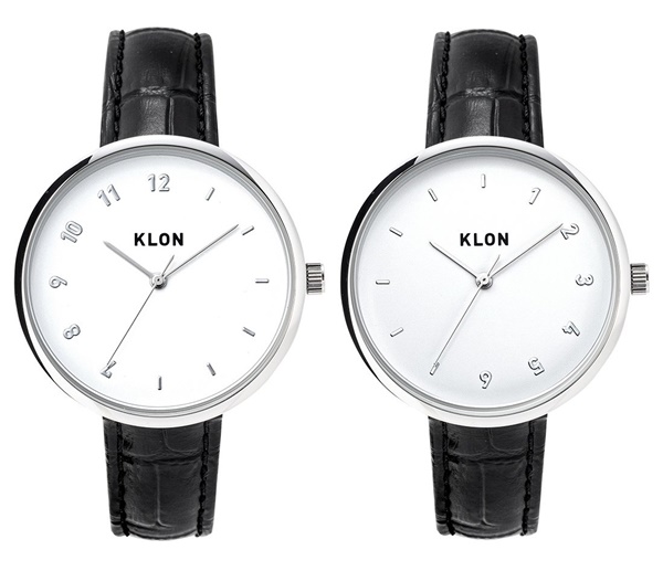 KLONが販売するこちらのペアウォッチも人気があって、シンプルなデザインや白と黒の対比などが魅力です。その中に遊び心も取り入れていて、文字盤の数字はそれぞれ前半と後半に分かれています。