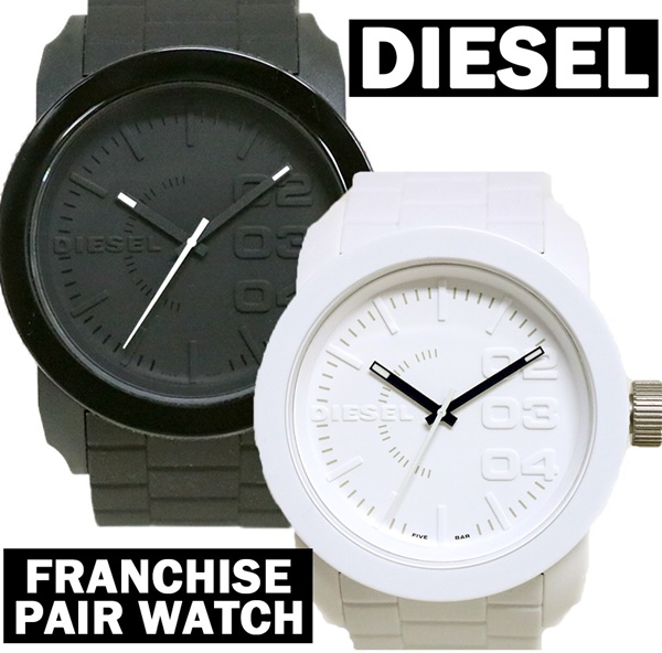 ディーゼルはメンズ・レディースともに人気のブランドで、ペアウォッチの販売もしています。黒と白の対比が利いていて、非常に存在感のある腕時計です。