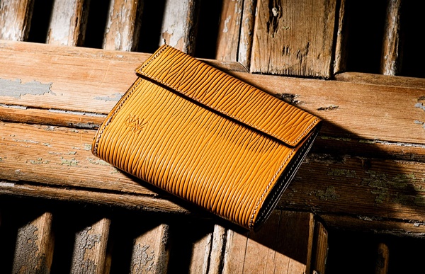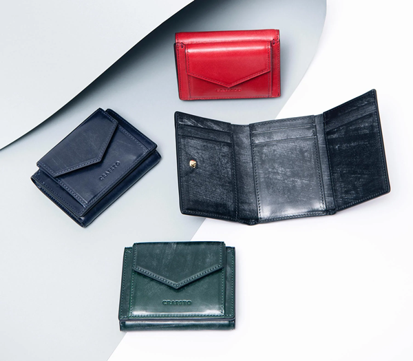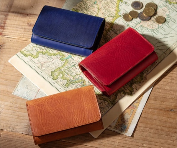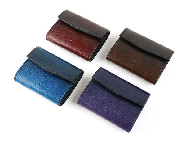 「トリピエガート」は上の写真のように色鮮やかな3つ折り財布です。独特なシワ模様が特徴で、ワイルドさと同時に色の濃淡の美しさなども感じられる財布となっています。