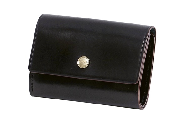 GANZOのこちらの3つ折り財布は、馬のお尻部分から採れる高級革のシェルコードバンを使って作られています。手のひらサイズでありながら、コードバンならではの重厚感もしっかり出た財布です。