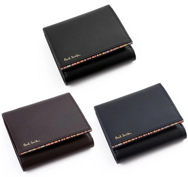 ポールスミスの財布もプレゼント用に人気が高いです。こちらの 3つ折り財布はデザインや色合いがシンプルですが、その中でもポールスミスならではの色鮮やかなストライプ柄がワンポイントで入っていてオシャレです。