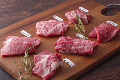 ロース、サーロイン、ヒレ、イチボ、ミスジ、上モモ、モモなどの部位をカットして入れてるので、いろんな味を楽しむことができますよ♪