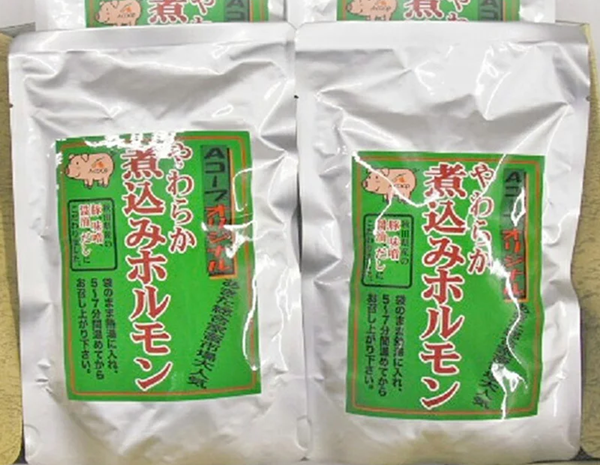 昭和38年創業の老舗精肉店が作る豚ホルモンで、秘伝のタレが染み込んだ美味しい一品です。ご飯のお供や酒のつまみなどにピッタリです♪300gずつ小分けにされてるので、好きな時に食べることができます。