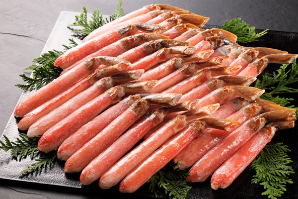 釜庄が販売するズワイガニのポーションはサイズが大きいのが特徴。4Lまたは5Lという極太のズワイガニ棒肉のみを厳選してセットにしています。