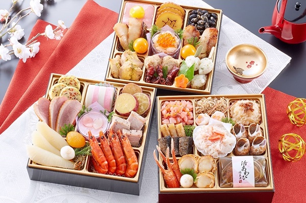 あわびやロブスター、ウニ、たらば蟹、近江牛ローストビーフなどの贅沢な食材をふんだんに使用。華舞の中でも最高級のおせちです。
