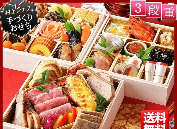 人気フレンチシェフの村上元彦氏の『和洋折衷「手づくり三段重」』は、中身が非常に充実したおせちです。