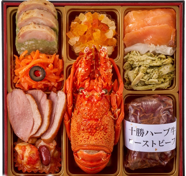そしてローストビーフは近江牛を贅沢に使用。他にもロブスターやたらば蟹、あわびなどの高級食材をふんだんに使った豪華おせちです。