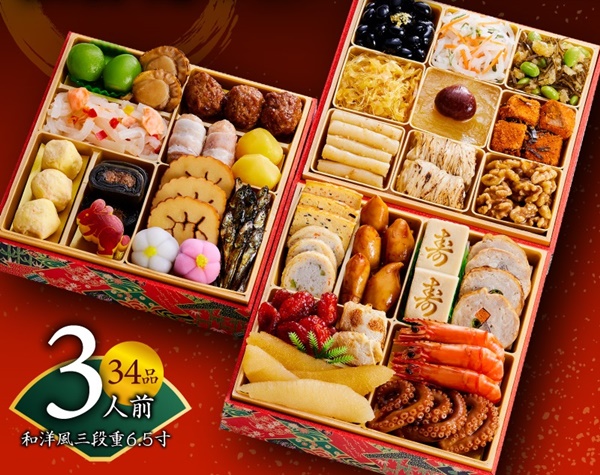 こちらのおせちは全34品が入った3段重の和洋おせちです。おせち通販として人気が高い板前魂のおせちなので、味は間違いありませんし、口コミ評価も高めでおすすめですよ。