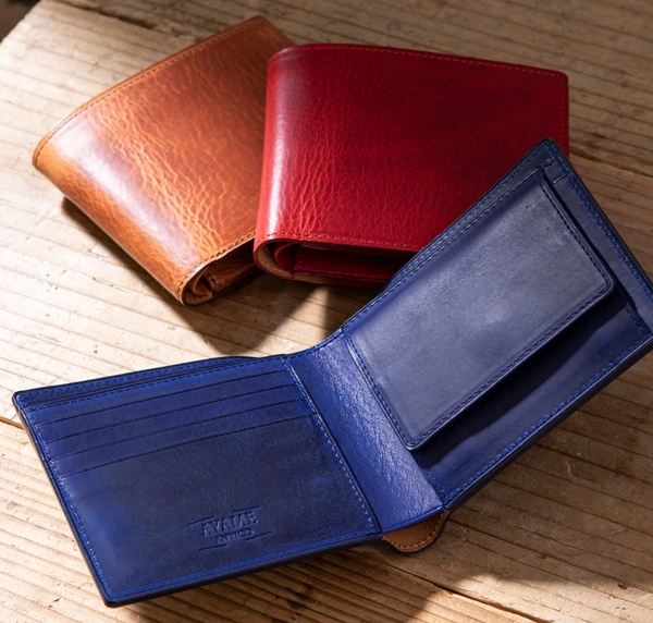 AYAME ANTICOの『リンペラトーレ』は、写真のように鮮やかな色合いが魅力の2つ折り財布です。独特なシワ模様によってグラデーションのような色にもなっていて、それがまた美しいです。