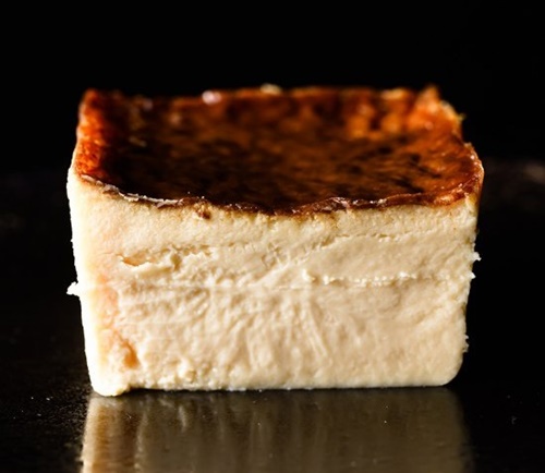 こちらのチーズケーキの魅力は、何と言っても表面の焦げですね。見た目のインパクトが抜群なだけでなく、焦がしによるほろ苦さと香ばしさが感じられ、絶妙な味わいとなっています。