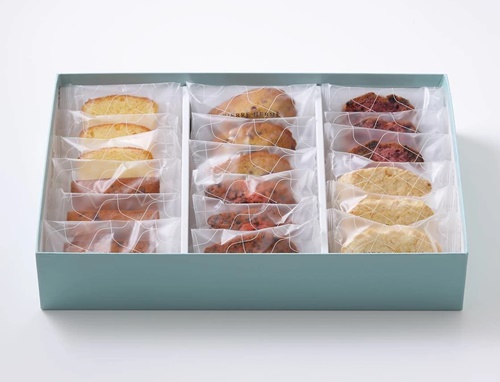箱の中にキレイに詰め込まれていて、ギフト用にも最適です。少し違ったテイストでこちらの焼き菓子セットを選んでみてはいかがでしょうか?