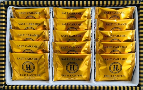 『H.ソルメルティサンド』は、キャラメルクリームをサクサクのキャラメル生地でサンドしたお菓子です。キャラメルには少量の塩も加えられていて、それによってキャラメルの甘さが際立っています。