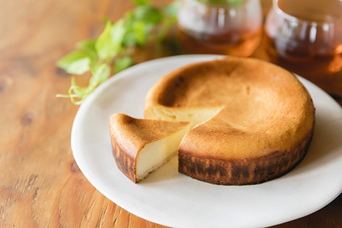 また、こちらのチーズケーキは高温のオーブンで一気に焼き上げるので、中はミディアムレアの食感に仕上がっており、しっとりなめらかな舌触りも楽しめます。