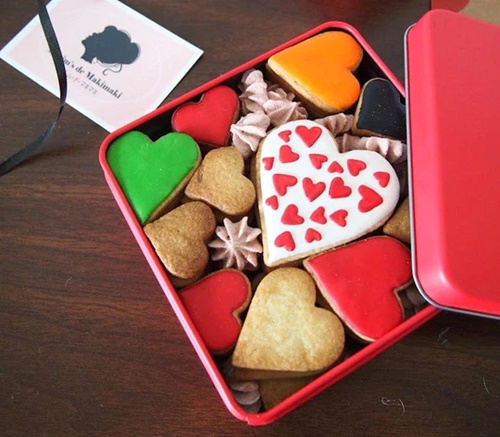 こちらの『アイシングクッキー缶』は、大小さまざまなハート型のクッキーが入っていて見た目もかわいいです。色のバリエーションも豊富で、箱を開けた瞬間に思わず目を奪われることでしょう。